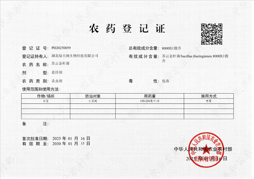 8000單位蘇云金懸浮劑農藥登記...